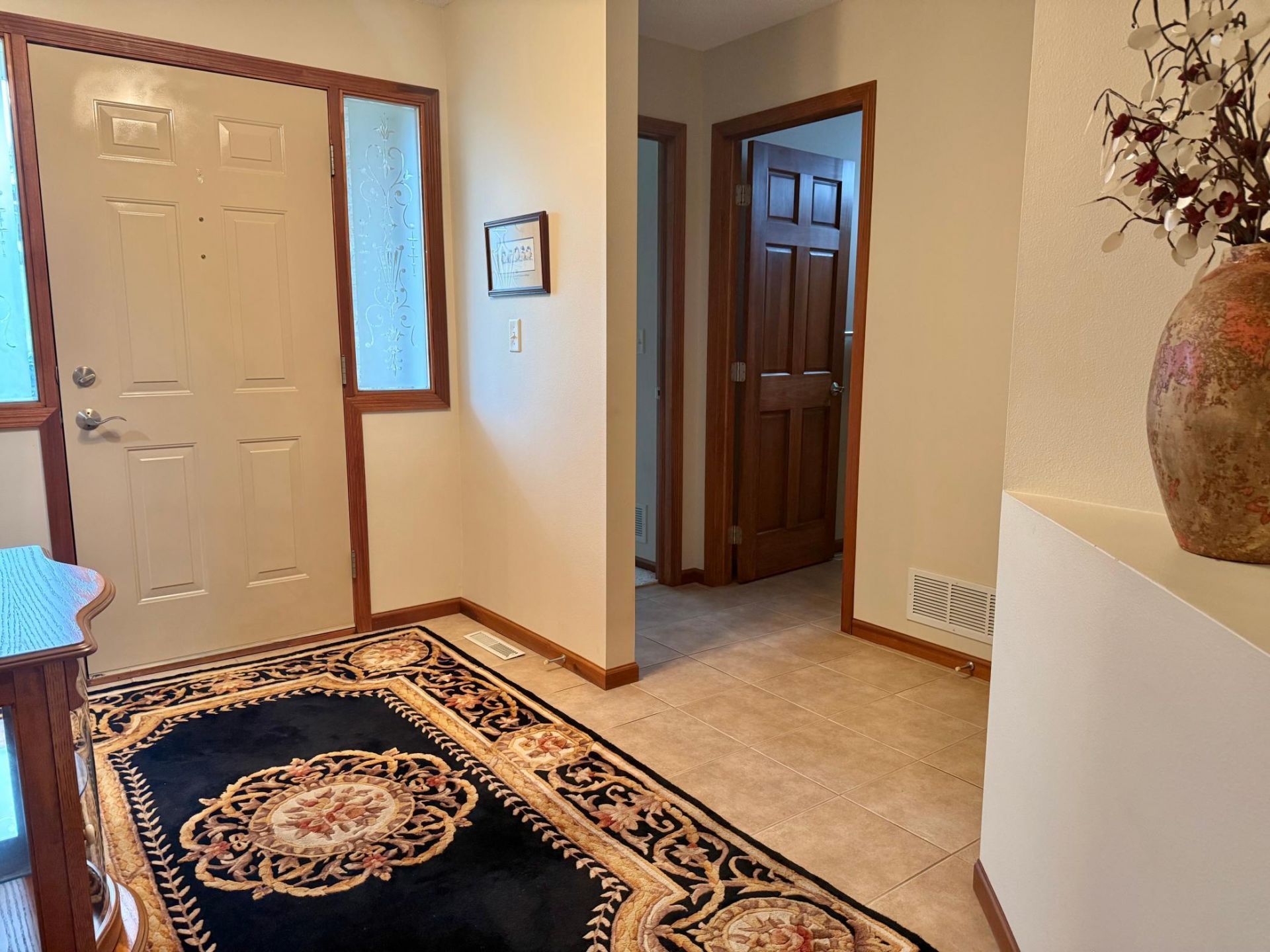 Timber Creek's Exclusive 2 Bed | 3 Bath | 1.57 Acres ? Set on a private wooded lot buffered by pond and wetlands, this maintenance-free home offers space, privacy, and future potential. Step inside to vaulted ceilings and true main-level living, including laundry, primary living spaces, and thoughtful finishes throughout. The kitchen features cherry cabinetry and built-ins, flowing into a warm living area with a gas fireplace and a formal dining area. Enjoy the 3-season porch or step out from the office onto the deck overlooking native grasses and peaceful surroundings. The partially finished full basement adds immediate value with a full bath and studded walls?ready for additional bedrooms, family room, or whatever the next owner envisions. Additional highlights include an attached 3-stall insulated and heated garage with a dedicated shop area, in-ground sprinkler system, and negotiable furnishings for a turnkey option. A rare blend of class, privacy, functionality, and opportunity.