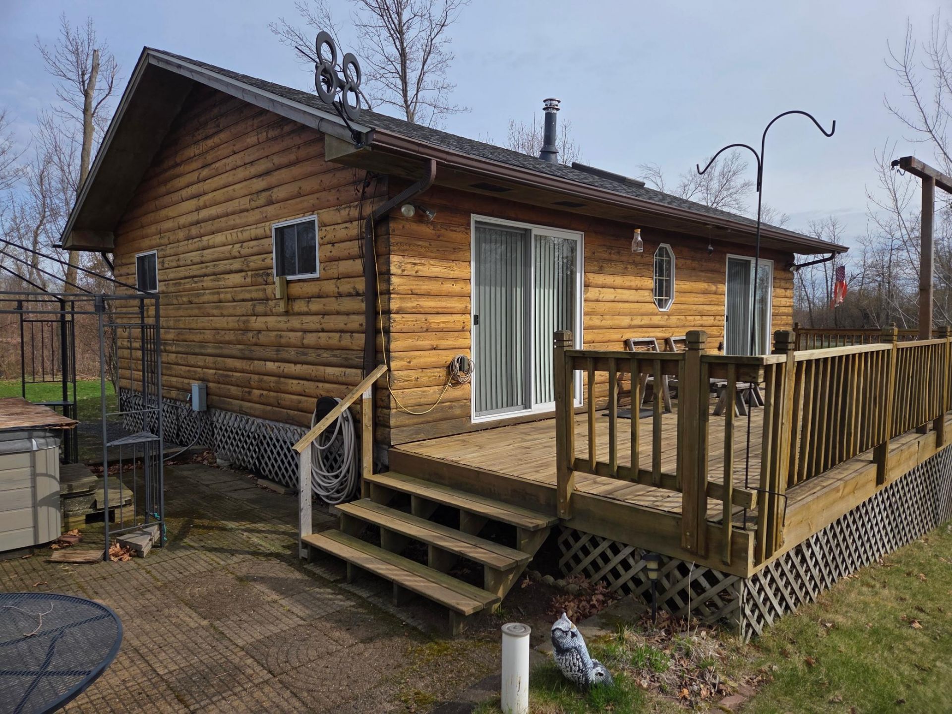 Escape to the peace and privacy of White Ash Lake with this charming 2-bedroom, 1-bath year-round cabin set on over 3 beautifully wooded acres and an impressive 334 feet of shoreline. Tucked away for ultimate seclusion, this property offers the perfect blend of relaxation and recreation.White Ash Lake is well known for its excellent fishing and is a haven for wildlife enthusiasts, attracting swans, geese, ducks, and majestic eagles throughout the seasons. Enjoy breathtaking westerly views and unforgettable sunsets from the wraparound deck, or unwind in the hot tub after a day on the water.The cabin comes fully furnished, making it truly move-in ready. Additional features include a carport, storage shed, and a 19' 2002 Eroco pontoon boat with a low-hour Johnson motor?perfect for exploring the lake right away.The spacious yard is dotted with apple trees and offers plenty of room for outdoor activities, while the surrounding wooded acreage provides just enough space for hunting if desired. Designed for flexibility, the cabin can be comfortably used year-round with a cozy woodstove and portable electric heaters, or easily winterized by draining the system and shutting off the heat.Whether you're looking for a peaceful getaway, a hunting retreat, or a turnkey lakefront property, this White Ash Lake cabin delivers a rare opportunity to own your own private slice of Northwoods paradise.