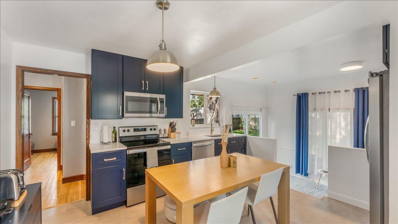 2107 Clearwater Road in St. Cloud is a well-maintained 3-bedroom, 1-bath home in the McKinley & Railroad Parks neighborhood that blends modern updates with the home's original charm. The completely remodeled kitchen features brand new cabinets, countertops, and appliances, while the updated main level bathroom includes a new vanity, toilet, flooring, and fixtures. Upstairs offers additional space including a cute guest bedroom. The dining area leads to a patio and a fully fenced backyard, providing great space for outdoor use, pets, or entertaining. The unfinished lower level offers storage or future finishing potential. Additional features include forced-air heat, central air, new washer and dryer, and a detached garage. Conveniently located near St. Cloud State University, shopping, parks, and trails along the Mississippi River. Schedule a time to see it today!