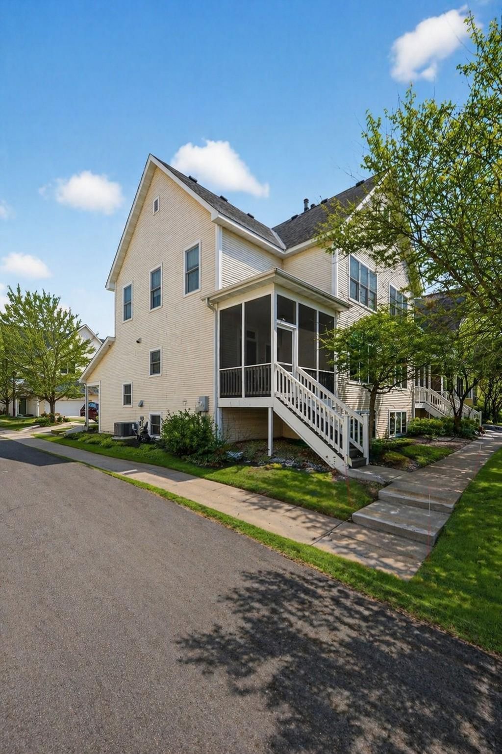 Convenient location and thoughtful design come together in this well-maintained end-unit townhome. Situated near major byways, restaurants, hospitals, places of worship, coffee shops and more, this home offers everyday ease without sacrificing comfort. The open-concept main level features attractive tile flooring throughout the entry and main floor living spaces, creating a clean and cohesive feel. Charming dining area just steps to a screened-in patio?perfect for summer meals or quiet relaxation?overlooking the courtyard.Upstairs, you'll find three spacious bedrooms, tastefully painted in neutral tones to suit a variety of styles. The lower level includes a recently finished family room and a nicely updated tiled bathroom, providing additional living space and flexibility. Ample storage throughout the home adds to its functionality.Lovingly cared for by the same owner for 20 years, this home clearly reflects pride of ownership?ready to welcome its next owner. Some images have been staged using AI.