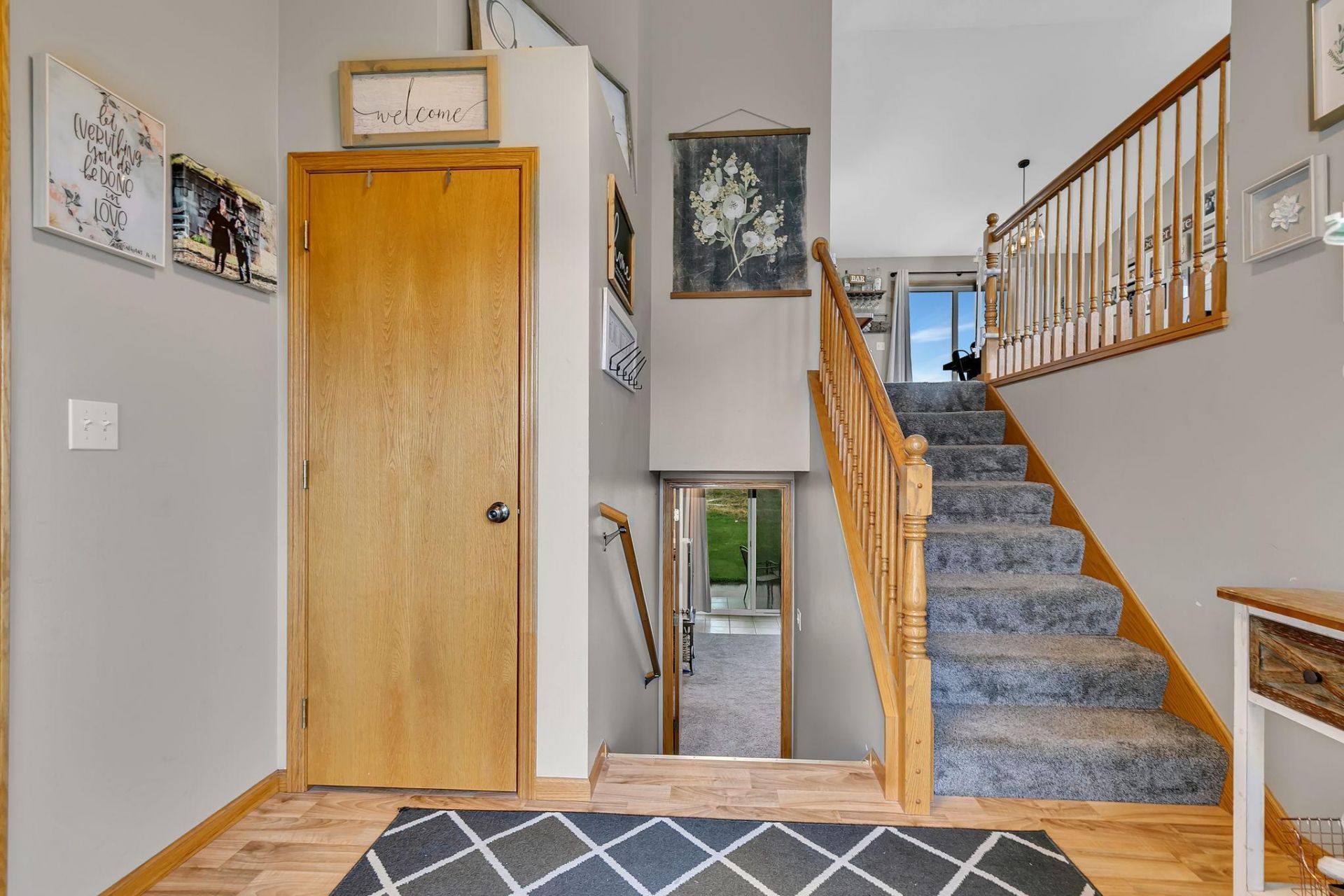 Much improved and ready to enjoy, this beautiful home is nestled in a location you'll love to call home. Welcome to Fairview Farms, a small development offering scenic views, neighborhood sidewalks, and shared amenities. Enjoy peaceful sunrises from the backyard and visible sunsets in the evening. A large park shelter and playground provide easy access for recreation and gatherings.An oversized Minnesota foyer welcomes you into the home's impressive two-story vaulted entry. Large foyer windows bring in abundant natural light, and the massive step-in closet offers exceptional storage right from the start.The main level features an open and functional layout where the kitchen, dining, and living areas seamlessly merge. Updated flooring, appliances, and fresh paint create a calming space with a neutral color palette that complements a variety of furniture styles. Thoughtfully selected light fixtures enhance the home's warmth and charm, making it easy to envision how you'll personalize this stylish yet practical living area.Two generously sized main-level bedrooms each include walk-in closets. The main-floor bathroom offers a hard-top vanity and a full tub/shower combination.The lower level is a walkout to the backyard patio?perfect for enjoying warmer weather ahead. This level is filled with natural light and features a cozy corner fireplace. Two additional bedrooms with ample closet space, a designated laundry room, a full bathroom, and a utility room with storage complete the lower level.Outside, the mature yard is enhanced by an irrigation system, supporting lush landscaping throughout the season. The home also boasts updated siding and a newer roof, providing peace of mind for years to come.